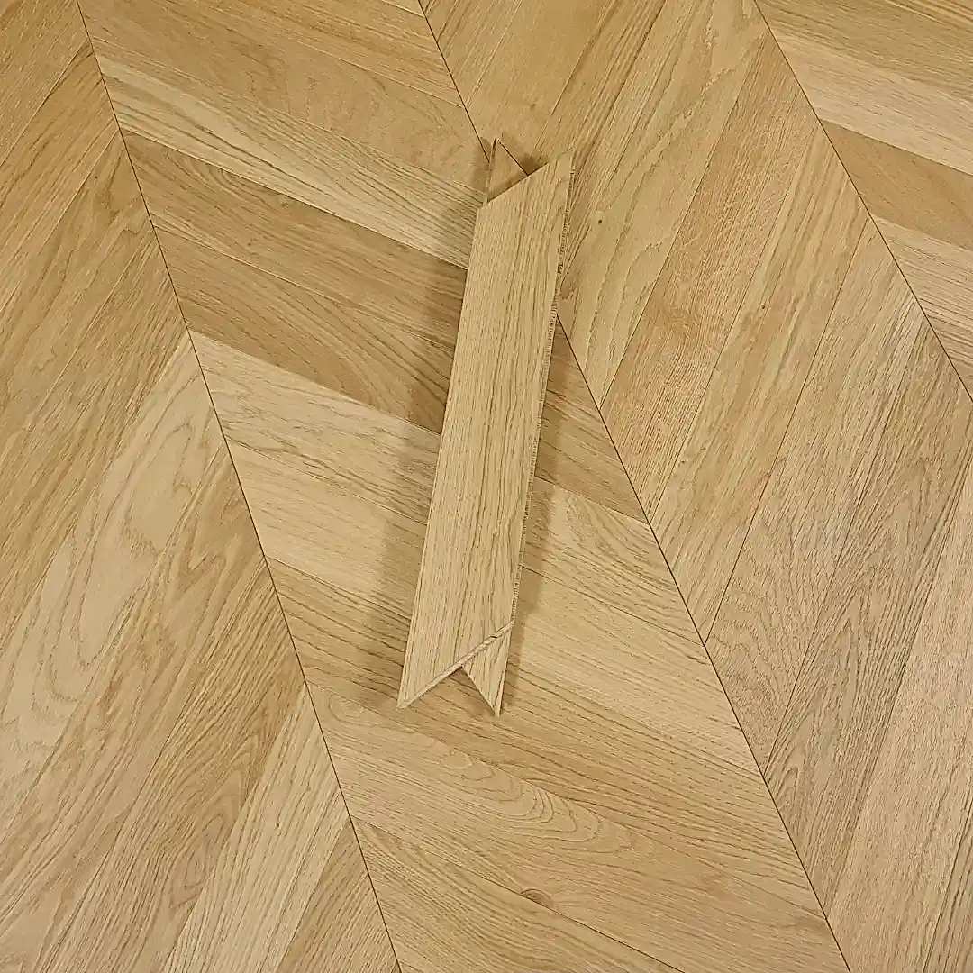 Classic Chevron Geometry: 90mm wide planks cut precisely for a seamless pattern.