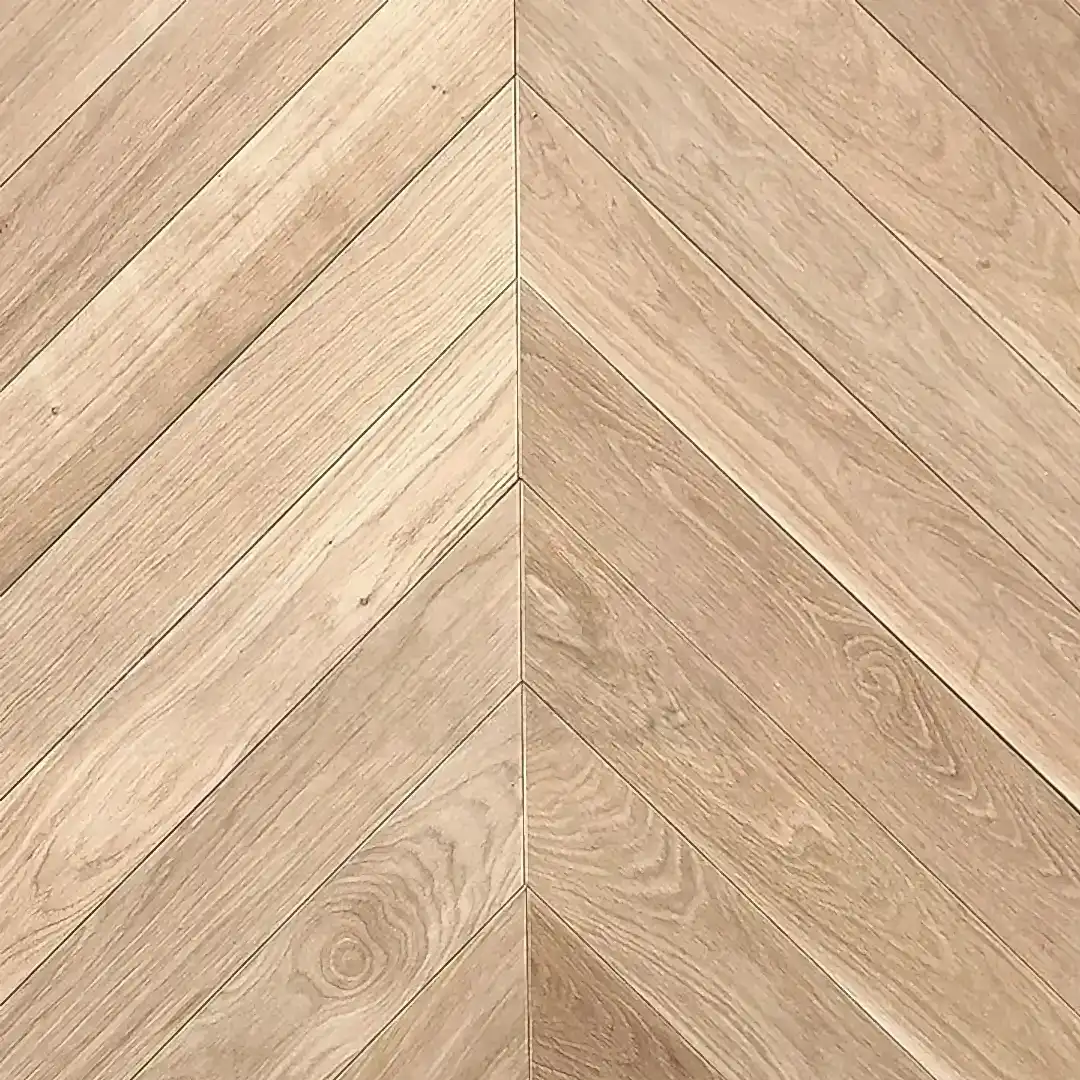 This option gives you full control. You pick colour, sheen, and texture. With prime-grade oak, you get fewer knots and a cleaner, modern look. The chevron layout elevates the visual flow and adds tension and elegance to your flooring.