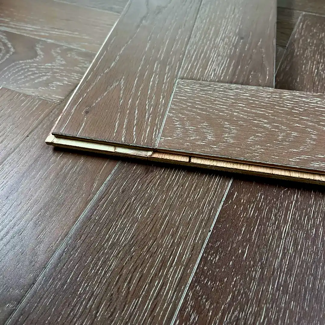 Built with 3/14mm engineered construction, this parquet flooring offers stability and strength. It works seamlessly with underfloor heating and performs well in living rooms, dining areas, and boutique spaces. The durable brushed and oiled surface ensures long-lasting protection while keeping a natural, tactile feel underfoot.
