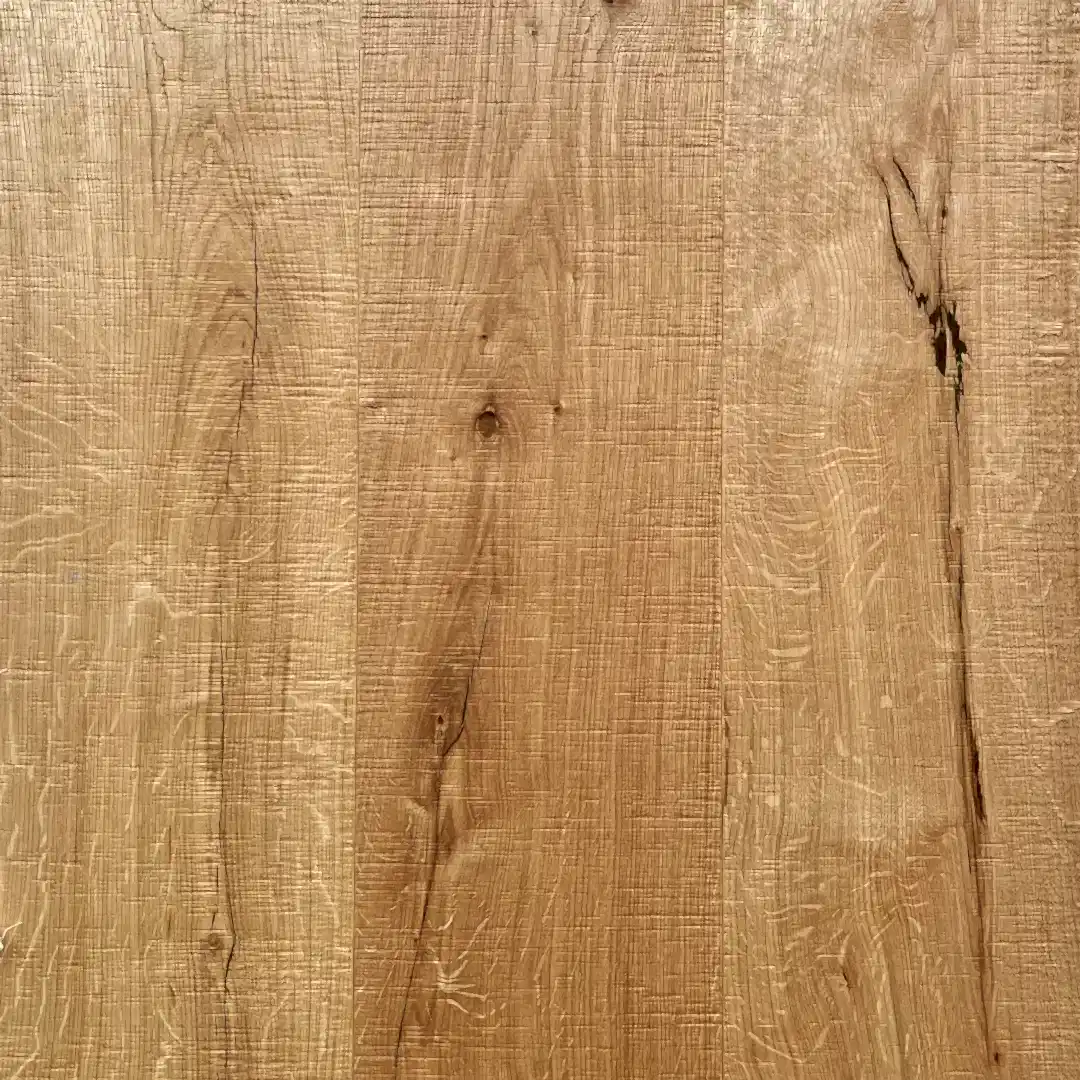 Each plank features a handcrafted bandsawn texture that adds depth, character, and a natural rustic charm to your floors. The saw-cut surface highlights the oak’s grain and natural patterns, creating a warm and inviting atmosphere in any room. This distinctive finish not only enhances the wood’s beauty but also helps mask scratches and everyday wear, keeping your floors looking pristine for years.